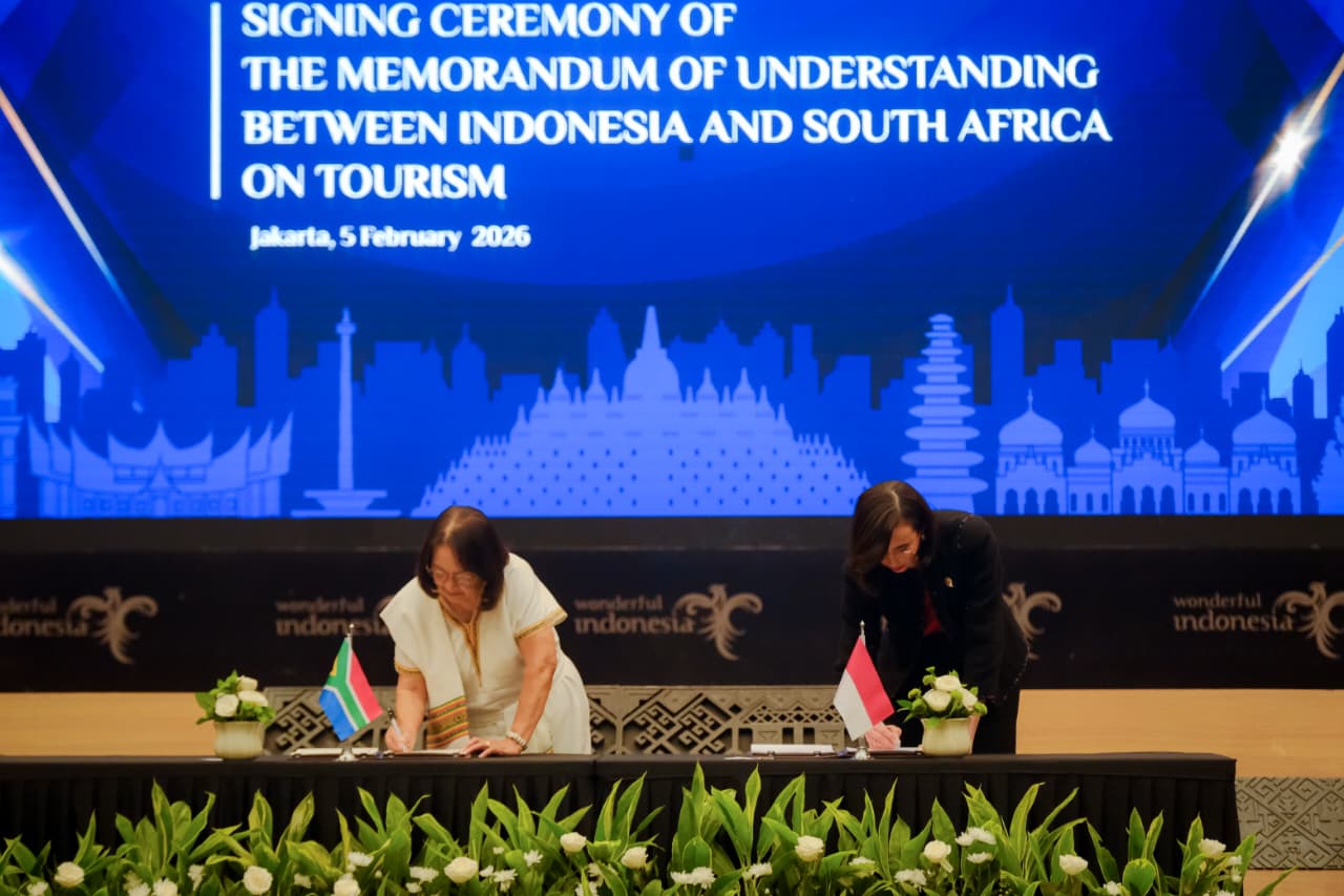 Penguatan kolaborasi tersebut ditandai dengan penandatanganan Nota Kesepahaman (MoU) antara Menteri Pariwisata (Menpar) RI Widiyanti Putri Wardhana dan Menteri Pariwisata Afrika Selatan Patricia de Lille di Gedung Sapta Pesona, Kantor Kementerian Pariwisata, Jakarta, Kamis (5/2/2026).